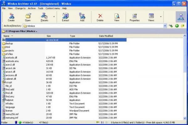 WinAce - это новая архиваторная оболочка, над которой работали автора ACE. В итоге, получилась красочная оболочка, поддерживающая многочисленные языки, использующая разнообразные форматы архивов, уникальные алгоритмы сжатия исполняемых файлов, звуков, изображений и других документов.