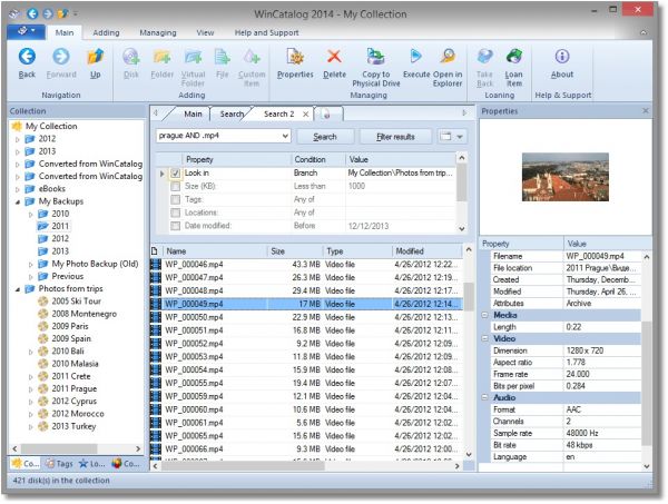 А теперь представьте, что вы ранее установили WinCatalog 2014 и добавили в его каталог все диски, включая HDD. Программа запоминает названия всех файлов и название диска, на котором они сохранены. Вы запускаете каталог, вводите в поиск название песни и приложение моментально уведомляет вас, на каком устройстве имеется данный трек. Как видите, данный софт способен сохранить вам время и нервы.
