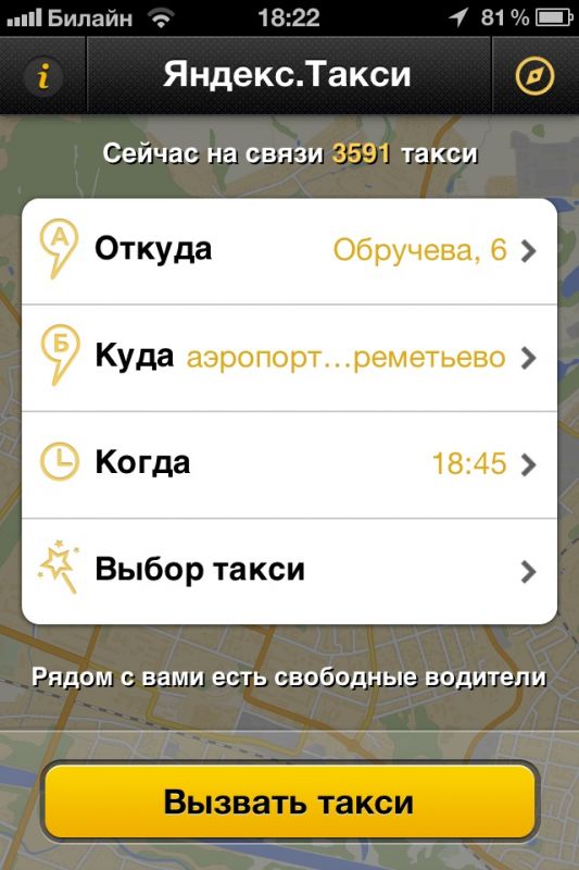 Яндекс.Такси – это приложение полезность которого сложно переоценить. Яндекс.Такси поможет вам найти свободное таки недалеко от вас, вызвать его и уже через 10 минут оно будет подано.