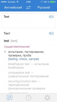 - Голосовое произношение перевода. Тут, надо сказать, качество пока не дотягивает до произношения текста Voice Over'ом Apple.
