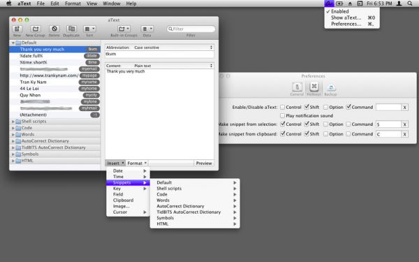aText – это удобная утилита, которая облегчает ввод текста. Вы сможете задать сокращения для регулярных фраз, тем самым сократив время набора текста.