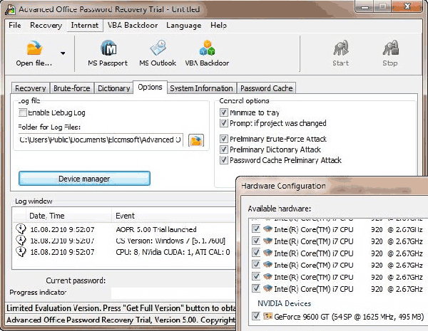 Advanced Office Password Recovery – мощная программа для восстановления утраченных паролей от документов Microsoft Office, использую всю мощь вашего многоядерного процессора и GPU видеокарты.