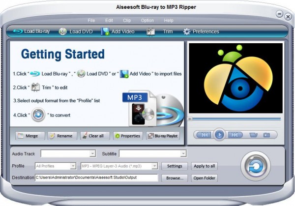 Aiseesoft Blu-ray to MP3 ripper – удобная программа-конвертер, при помощи которой вы сможете преобразовать Blu Ray в MP3 и другие популярные аудио форматы. Особенность Aiseesoft Blu-ray to MP3 ripper является крайняя простота использования.