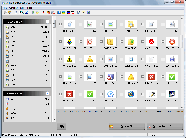 AllMedia Grabber – программа для поиска мультимедийных ресурсов, таких как звук, картинки, иконки, курсоры, видео, в исполняемых файлах, различных библиотеках и прочих файлах.