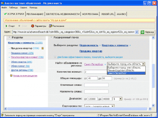 Особенности программы «Анализ частных объявлений – Недвижимость»: