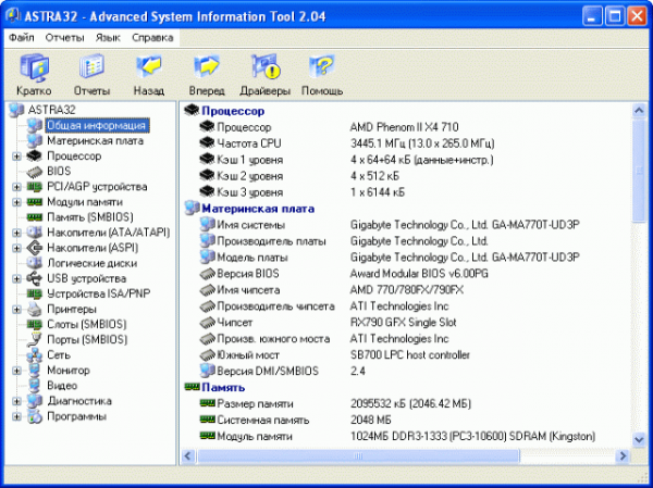 ASTRA32 – удобная программа, позволяющая получить исчерпывающую информацию о конфигурации компьютера ASTRA. Помимо основной информации, с помощью ASTRA32 вы сможете получить недокументированные данные.