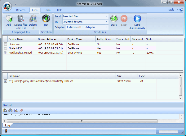 Blue Sender - программа для распространения информации по средствам устройств с Bluetooth. С помощью этой программы вы сможете посылать рекламные объявления или другие сообщения по Bluetooth.