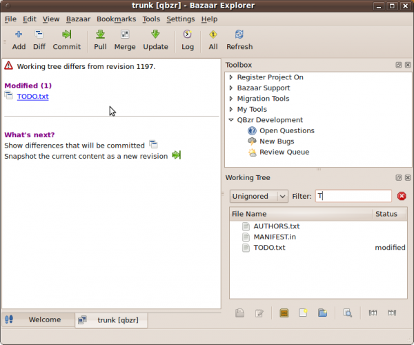 Bazaar – бесплатная программа, которая позволяет отслеживать историю проекта с течением времени и легко сотрудничать с другими членами команды, которые заняты в этом проекте.