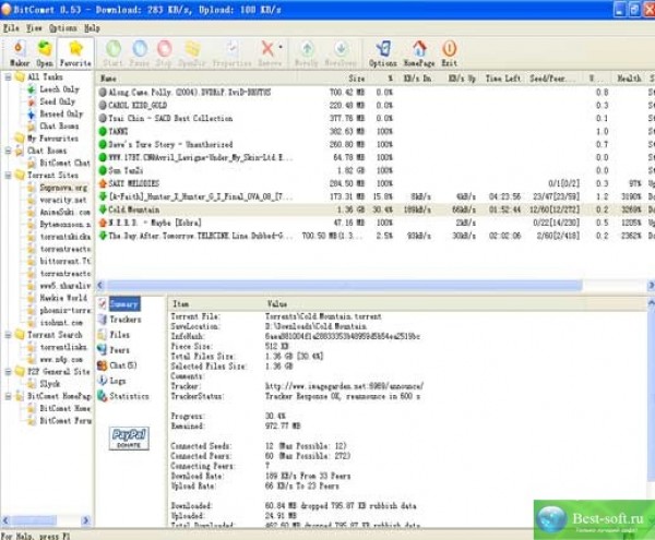 BitTorrent/HTTP/FTP - бесплатный менеджер закачек. Файлы в формате MP3, rmvb, wmv, и qt доступны для просмотра во время загрузки, что позволяет сразу оценить качество. Автонастройка ICF (Internet Connection Firewall) и ICS (Internet Connection Sharing).