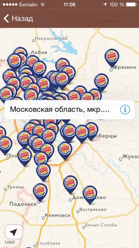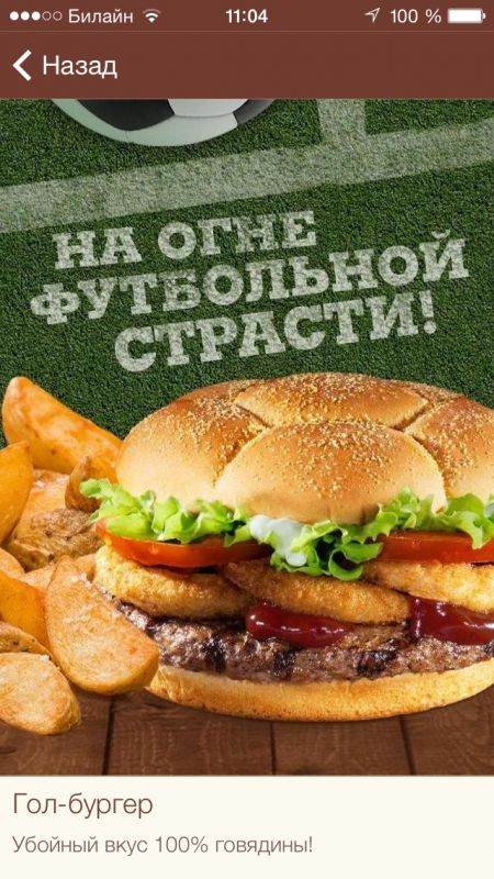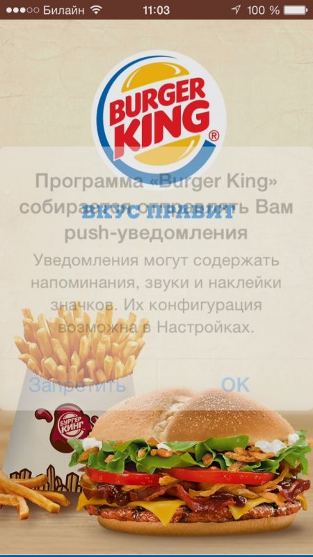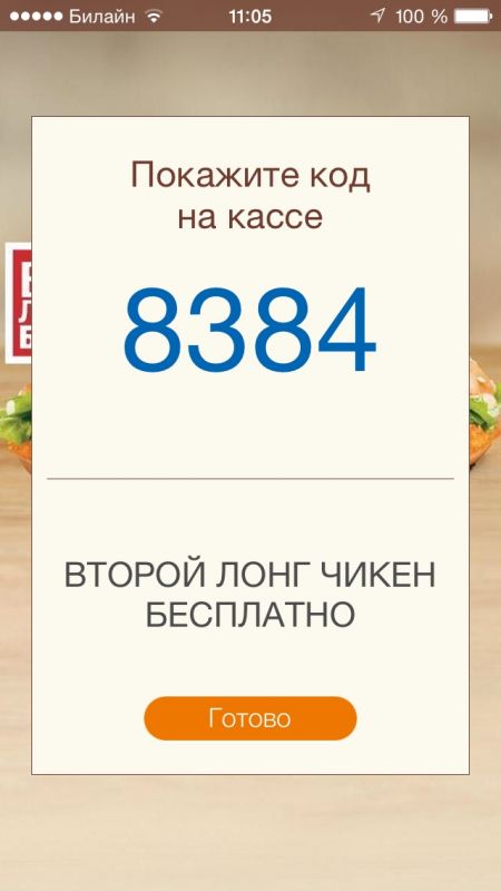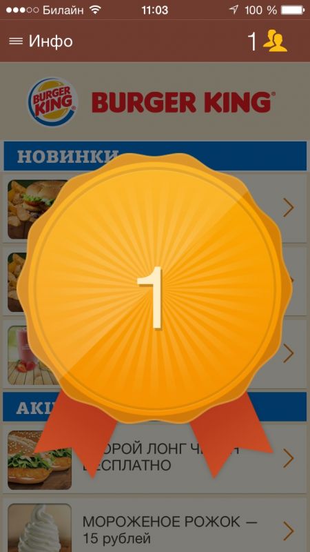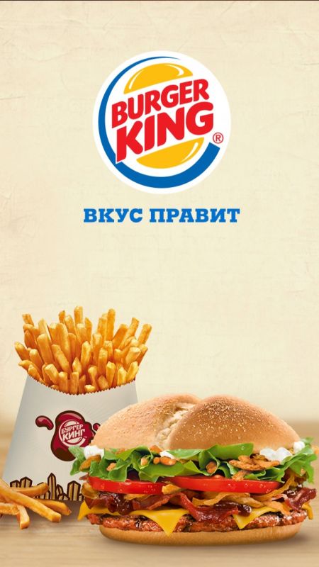 Мобильное приложение Бургер Кинга в России. С помощью него вы можете получать различные скидки в ресторанах BURGER KING.