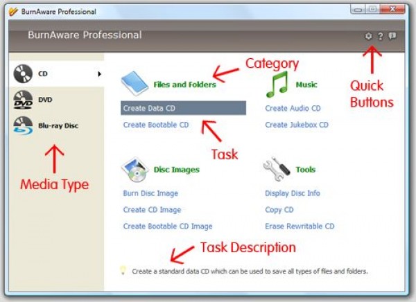 BurnAware Professional – мощный инструмент для работы со всеми типами дисков, включая современные Blu-Ray и HD-DVD. Интерфейс программы русский и английский.