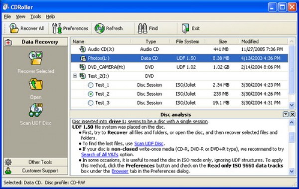CDRoller – программа для восстановления данных с компакт дисков. Программа работает со всеми известными форматами дисков и показывает очень хорошие результаты в области восстановления информации.