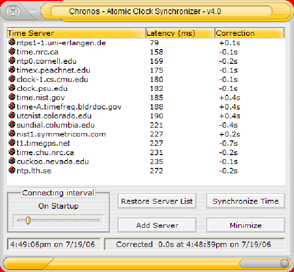 Chronos Atomic Clock Synchronizer – программа, которая надраивает ваши системные часы на точное мировое время, сверяя их с атомными часами.