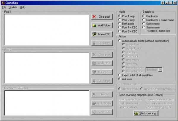 CloneSpy – небольшая программа для осуществления поиска и удаления дубликатов файлов. Программа имеет приятный интерфейс и низкую потребляемость ресурсов, да еще ко всему этому бесплатна.