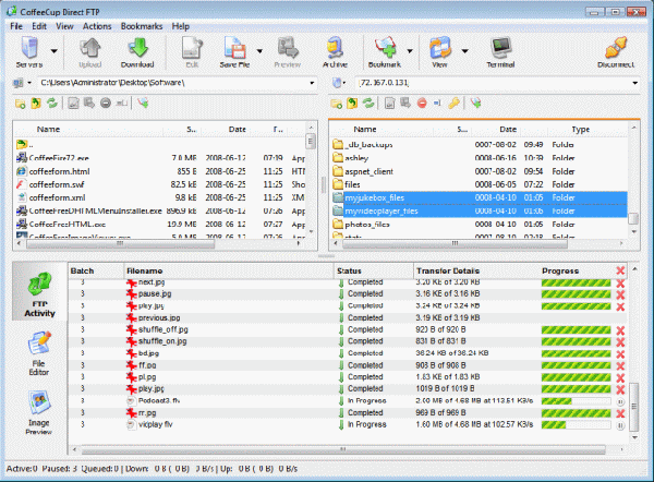 CoffeeCup Direct FTP – хороший FTP-клиент, имеющий возможность поддержки веб-сайтов. Программа позволяет скачивать и закачивать файлы любого формата.