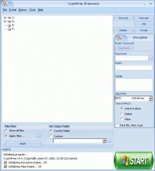 Crypt4Free – это бесплатная программа, которая позволяет зашифровывать любой тип файлов по одному из дух, предусмотренных программой, алгоритму. Программа отличается высокой скорость шифрования информации.
