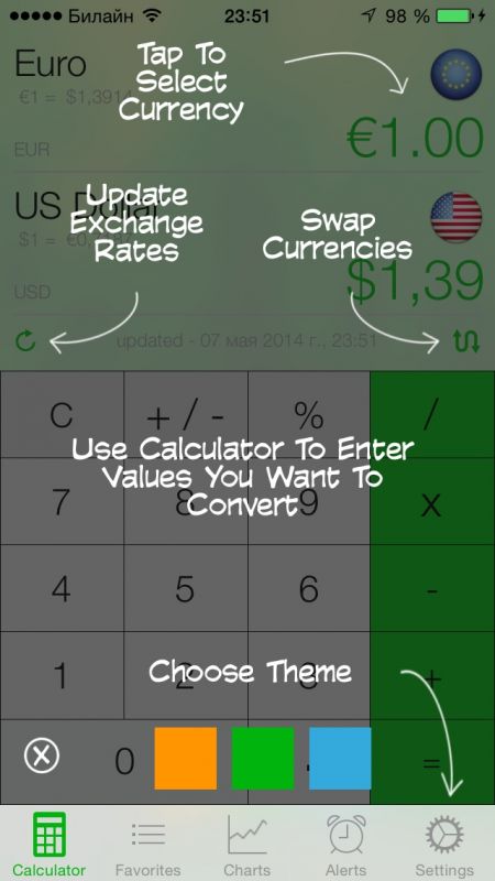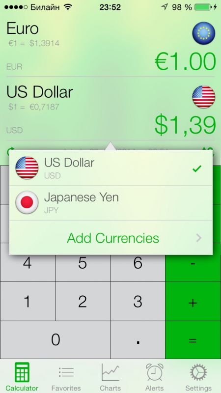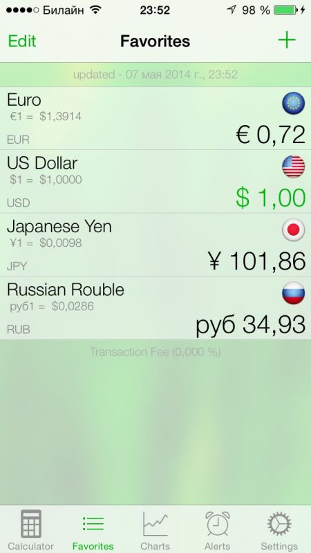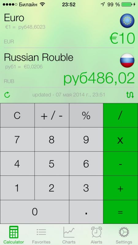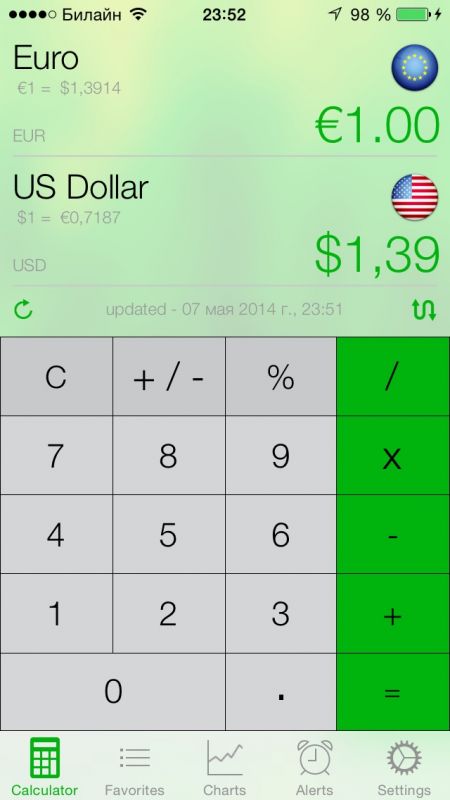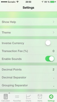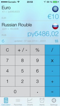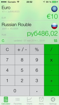 Хотя приложение достаточно функциональная, калькулятор, который позволяет переводить из одной валюты в другую не очень удобен. В приложении В курсе процесс перевода из одной валюты в другую сделан на порядок удобнее.