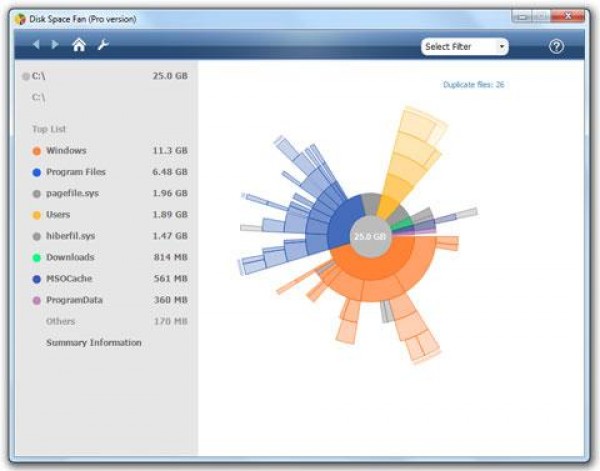 Disk Space Fan Pro– профессиональная версия программы Disk Space Fan, позволяющая провести анализ жесткого диска и выявить точное количество свободного места.