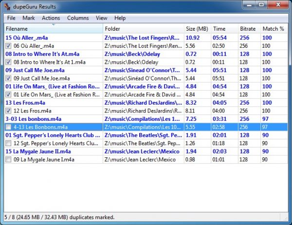dupeGuru Music Edition - это обновленная версия мощной программы, предназначенной для поиска дубликатов музыкальных файлов. Если у вас огромная коллекция, тогда вам наверняка будет полезна данная утилита. Даже если все музыкальные файлы будут иметь разные теги, продолжительность звучания или названия, утилита все равно найдет дубликаты в кратчайшие сроки.