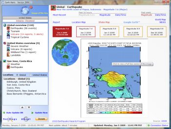 Earth Alerts – программа для наблюдения за всеми глобальными событиями на земле. Вы, например, сможете в любой момент узнать, где произошло землетрясение и где располагается его очаг.