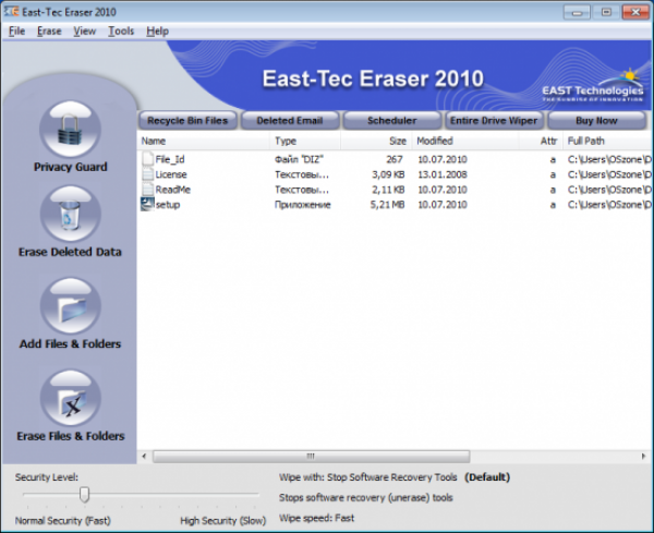 5. East-Tec Eraser крайне проста в использовании