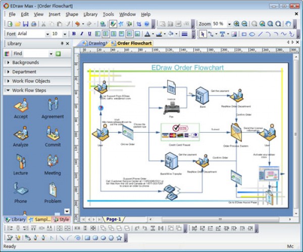 EDraw Max – мощный инструмент для создания практически любых типов схем и диаграмм. Программа содержит огромное количество векторных символов, форм и шаблонов для облегчения работы.