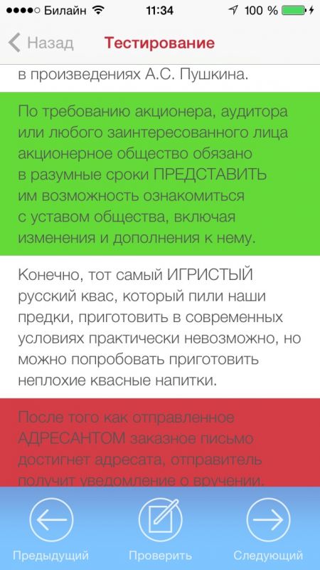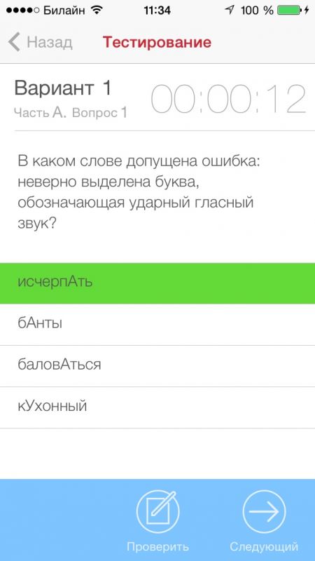 Приложение позволяет подготавливаться к сдаче ЕГЭ в 2014 году в двух режимах - режиме тестирования и режиме экзамена. В режиме тестирования вы можете сразу видеть как вы ответили, тогда как в режиме экзамена вы не сможете посмотреть правильный ответ пока не пройдете ЕГЭ до конца.
