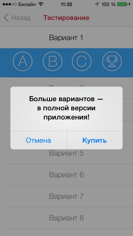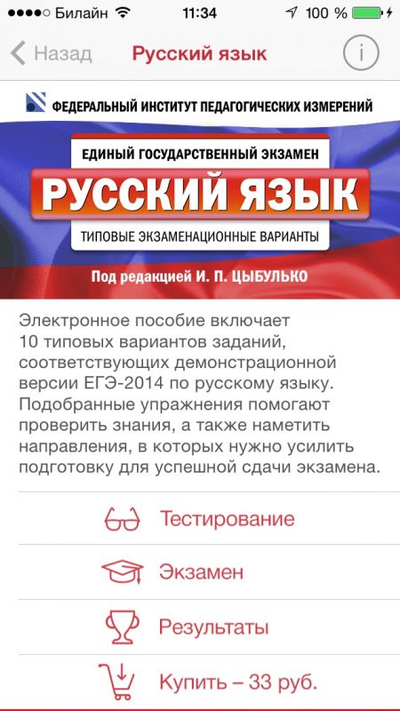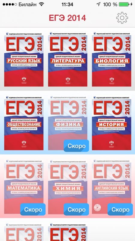 Приложение для подготовке к ЕГЭ в 2014 году. 11 основных предметов. Множество вариантов. Первый вариант каждого предмета бесплатный, за остальные надо платить.