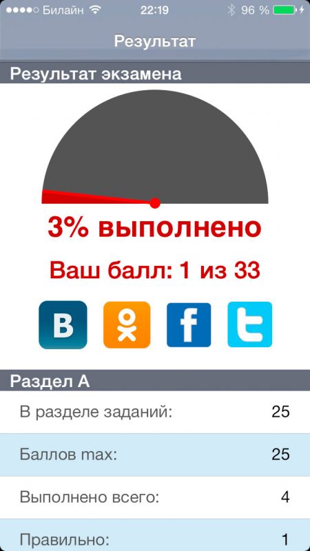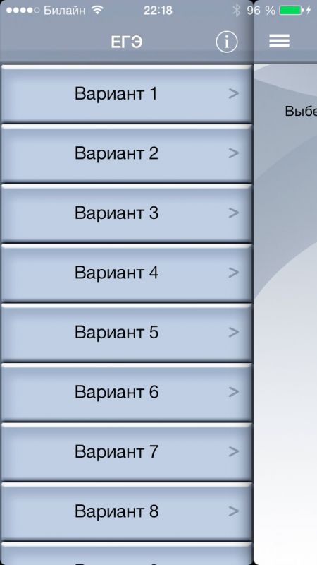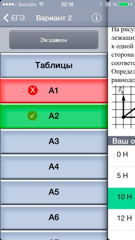 В режиме Экзамен пользователь должен самостоятельно ответить на все вопросы в варианте за отведенное время, а приложение подсчитает сколько бы баллов пользователь реально набрал по ЕГЭ.