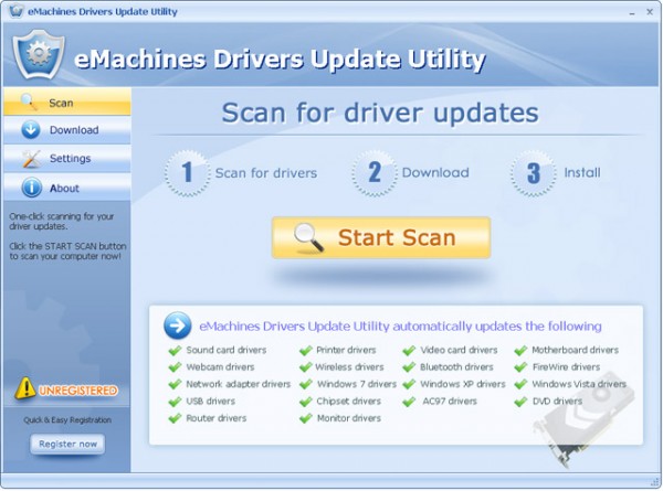 eMachines Drivers Update Utility – это удобный инструмент, позволяющий автоматизировать процесс обновления драйверов устройств eMachines. Все драйвера качаются с официального сайта производителя.
