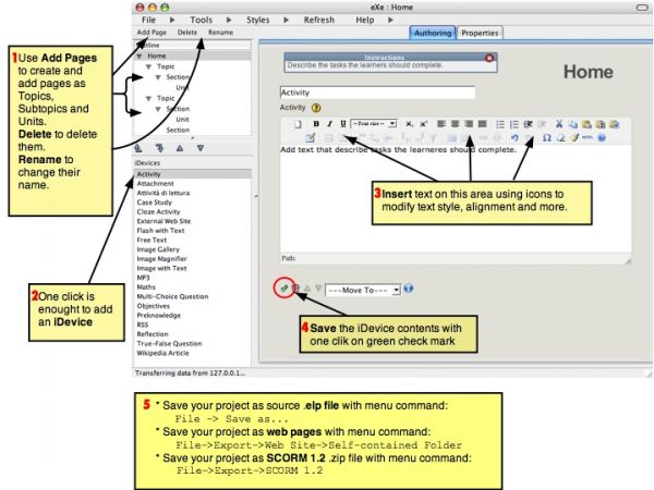 Exelearning – это обучающая платформа предназначенная для студентов и начинающих веб-дизайнеров, не требующая знания HTML или XML языков разметки.