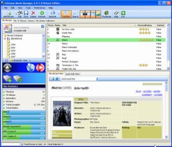 eXtreme Movie Manager – мощная программа для каталогизации вашей домашней фильмотеки. ДЛЯ каждого фильма отведено свыше семидесяти полей для описания.