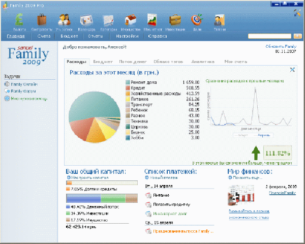 Family – лучший помощник в деле управления личными и семейными финансами. Программа позволяет составлять семейный бюджет, финансовый план на определенный срок, вести учет выплат по кредитам и депозитам.