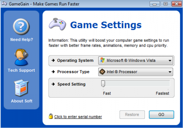 GameGain – программа для оптимизация скорости работы компьютерных игр. Данный инструмент имеет простой интерфейс и вам не придется разбираться в сотне различных настроек, все предельно просто.