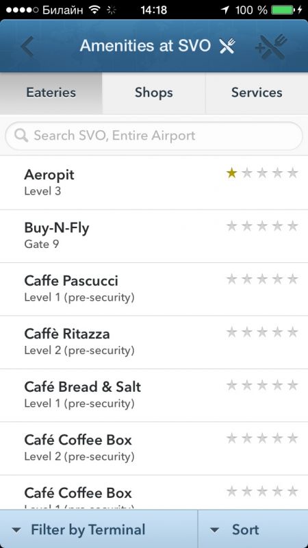 - Информация о ресторанах, магазинах и т.д. в аэропортах.