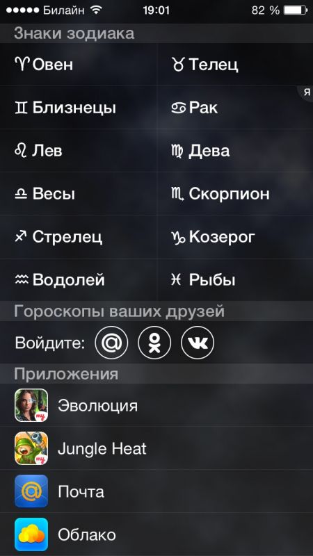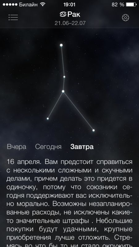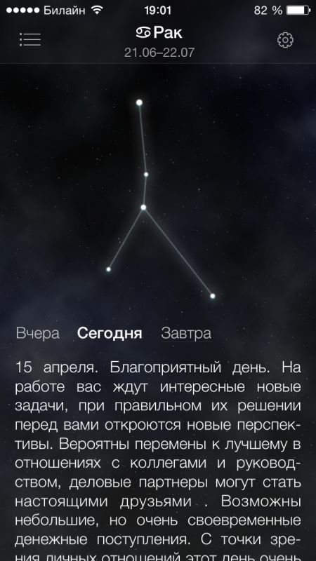 Гороскопы от популярного портала Mail.Ru. Ежедневные прогнозы для всех знаков зодиака в вашем айфоне и айпаде. Возможность просмотра гороскопа своих друзей из социальных сетей. Гороскопы Mail.Ru обладают качественным, современным, удобным интерфейсом.