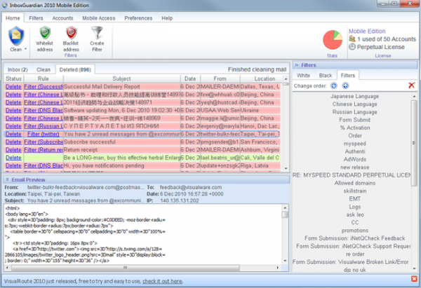 InboxGuardian – это спам-фильтр электронной почты, блокирующий любую нежелательную информацию. Пользователь сам может настроить уровень доверенности электронным письмам.