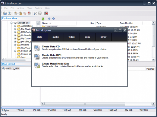 InfraRecorder Portable – мощная программа, предназначенная для записи различной информации на CD/DVD диски. Infra Recorder Portable предоставляет пользователю возможность создания CD/DVD дисков с данными, музыкальных Audio CD и DVD видео дисков.