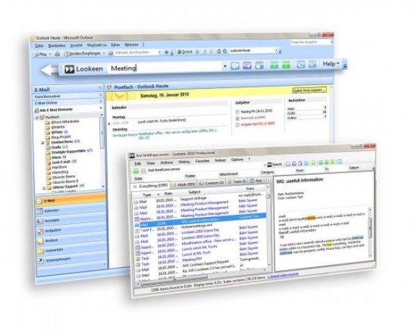 Lookeen – это профессиональный инструмент для поиска поиску электронной почты в Outlook. Lookeen обеспечивает быстрый и удобный доступ к любым данным, содержащимся в сообщениях электронной почты, адресных книгах, рабочих календарях или списках задач Outlook.