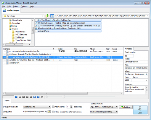 Magic Audio Merger – удобная программа, позволяющая соединять несколько музыкальных треков в один.