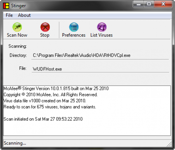McAfee AVERT Stinger – это бесплатный, но тем не менее исправно выполняющий свои прямые обязанности, антивирус, который способен избавить ваш компьютер от большинства известных вредоносных программ.