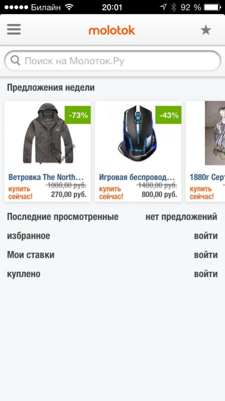 Официальное мобильное приложение популярного в России интернет-аукциона Молоток.ру. Приложение поддерживает большинство функций сайта, а именно: