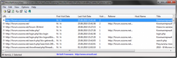 MozillaHistoryView – это удобная утилита, позволяющая вам просматривать историю посещаемых Интернет ресурсов. MozillaHistoryView подходит для браузеров Firefox, Mozilla и Netscape.