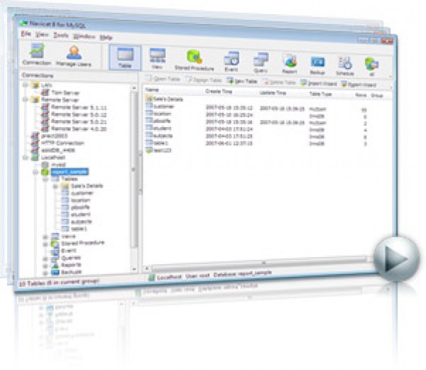 Navicat является идеальным решением для SQLite, MySQL, PostgreSQL и Oracle развития и управления. Это полнофункциональный инструмент, который имеет мощный графический интерфейс для управления базами данных и их технического обслуживания.