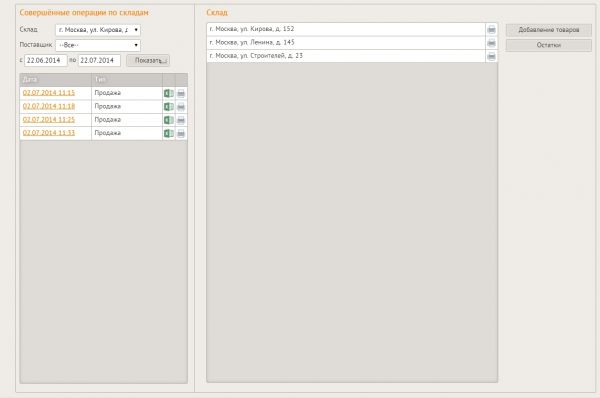 — Совершение складских операций (добавление товаров, списание, перемещение).