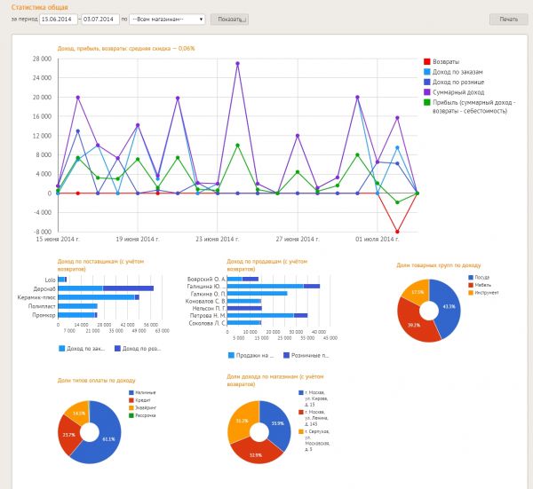 Торговая система реализована на веб-технологиях и позволяет сразу создать множество рабочих мест (директора, администраторов и продавцов). Для функционирования системы нужно только устройство с выходом в Интернет и подходящий браузер (операционная система не имеет значения).