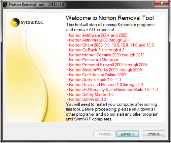 С помощью «Norton Removal Tool» вы сможете удалить: