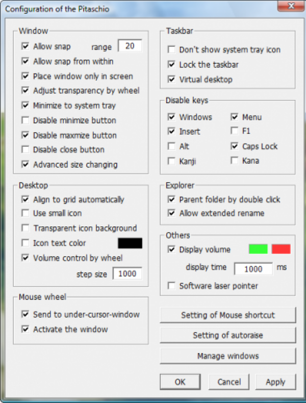 Pitaschio – небольшая утилита, которая упрощает работу Microsoft Windows, дополняя ее полезными функциями по работе работы с окнами, клавиатурой, рабочим столом.