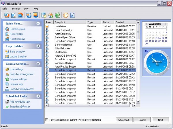 RollBack Rx – программа, предназначенная для «заморозки» показателей системы, которые вы при необходимости сможете вернуть в состояние на момент создания этой «самой заморозки»