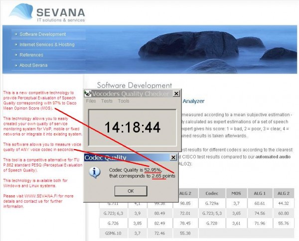 Sevana Vocoders Quality Checker – это голосовой кодек (вокодер), позволяющий сэкономить значительное количество ресурсов. Экономия достигается за счёт того, что вместо саамого речевого сигнала передают только значения его определённых параметров, которые на приемной стороне управляют синтезатором речи.